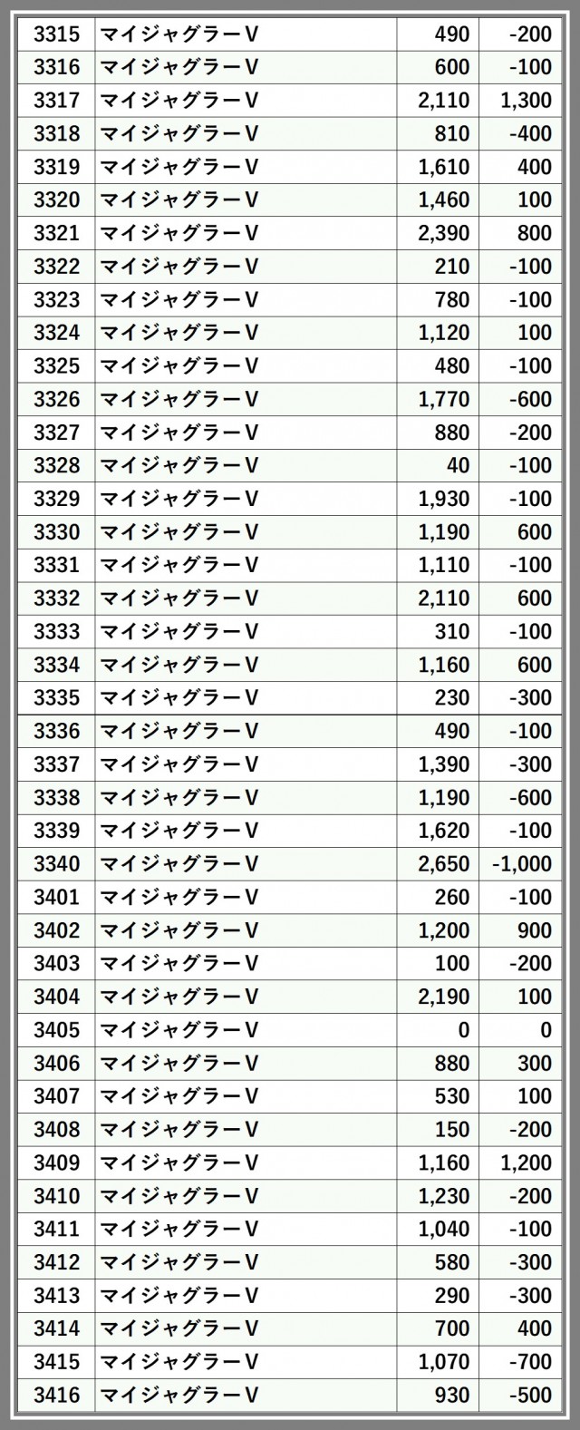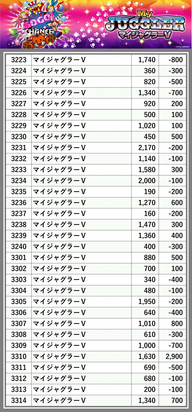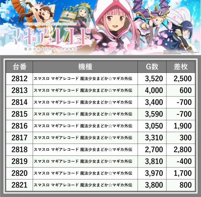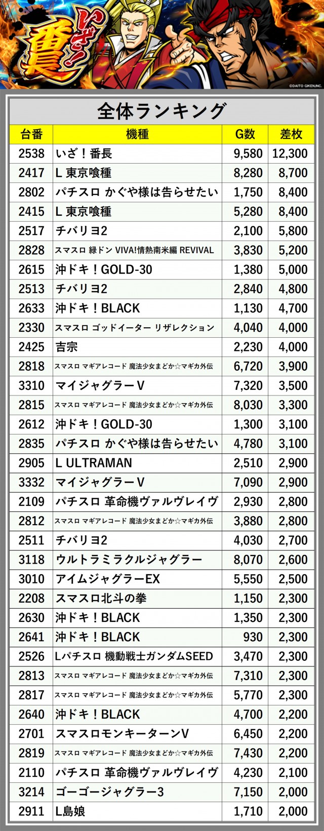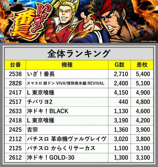 ※差枚数順に掲載しています