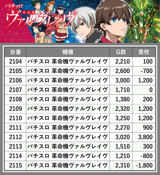 ※台番順に掲載しています