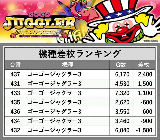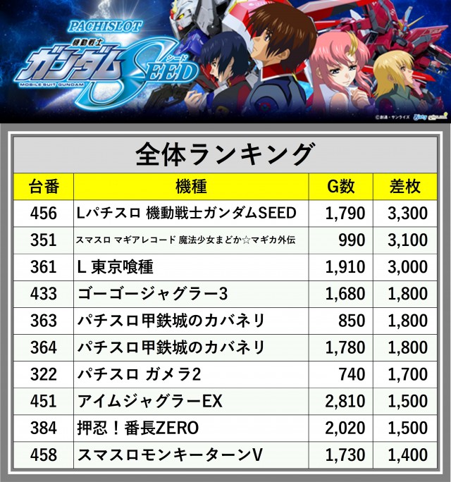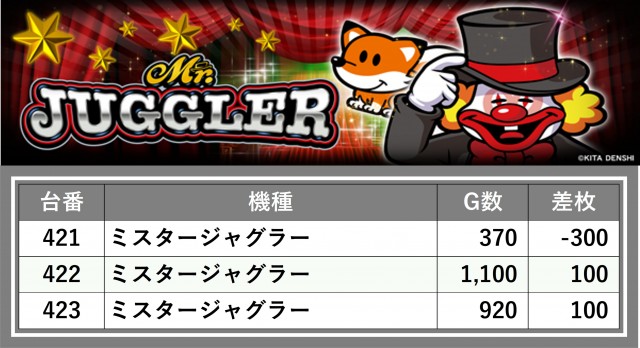 厳選された取材対象機種をはじめ、その他スロット全体から好記録が飛び出した!プレイヤーが楽しんだ1日を下記データにて振り返ってみて欲しい。