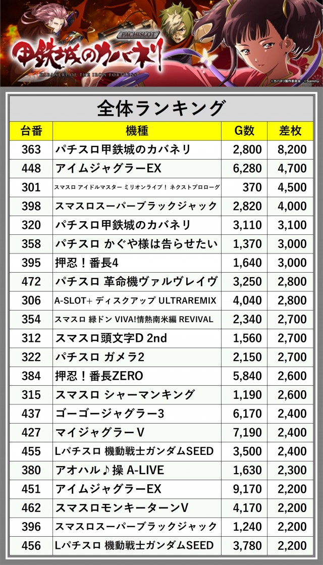 ※記事内の差枚表記はぱちタウン独自調査に基づくものです。ご了承ください。