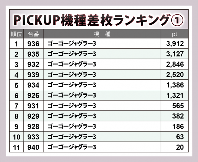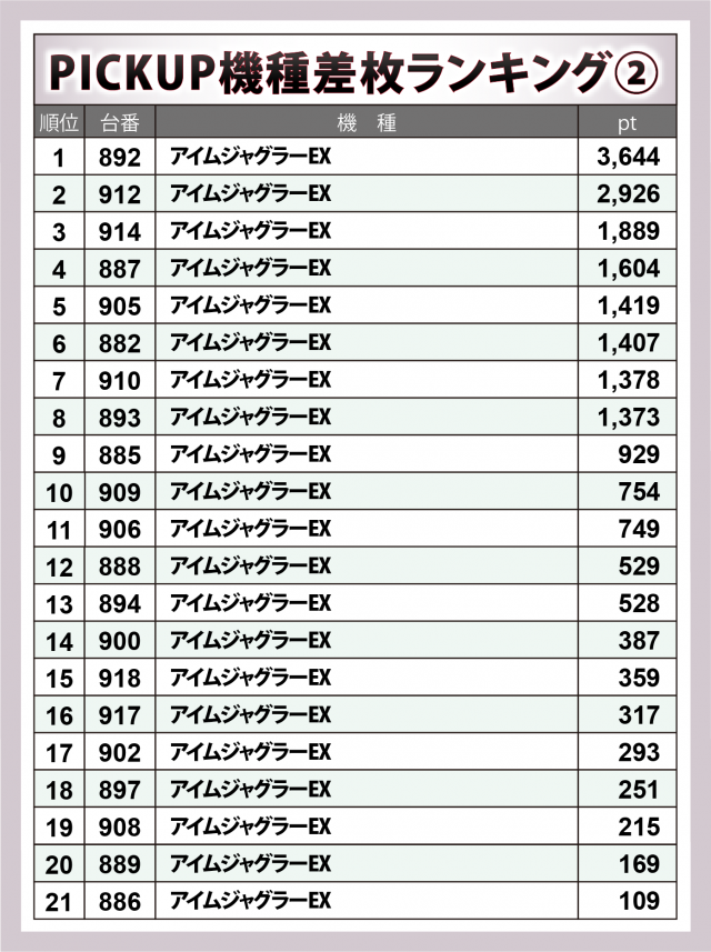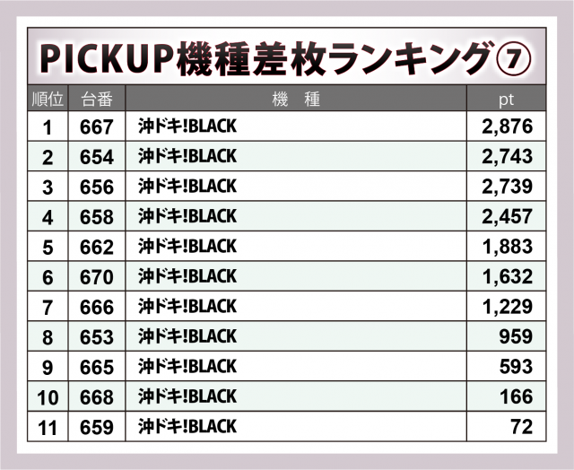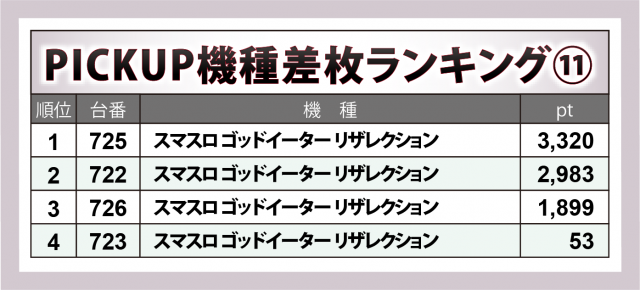 ここからは、入手した出玉データにより当日の優秀台を明らかにしていく。