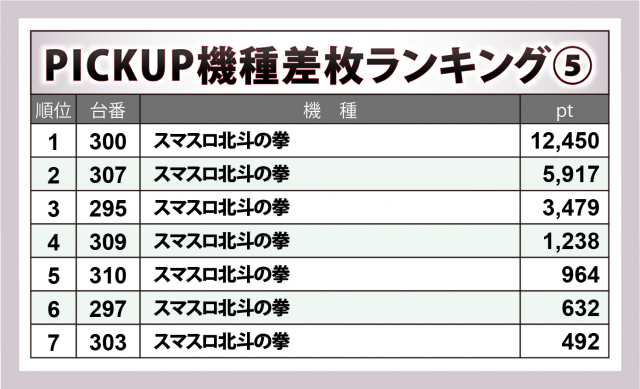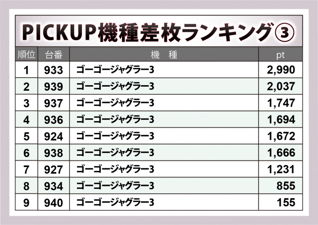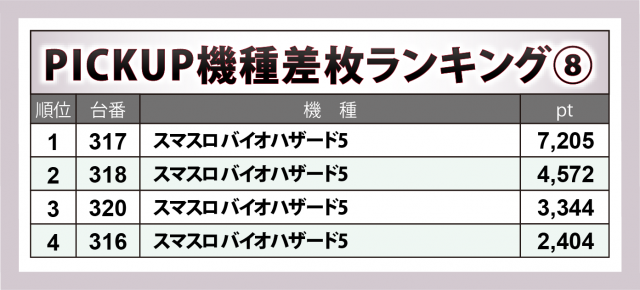 以下、当日の出玉データを用いて機種ごとに数値をチェックしていく。