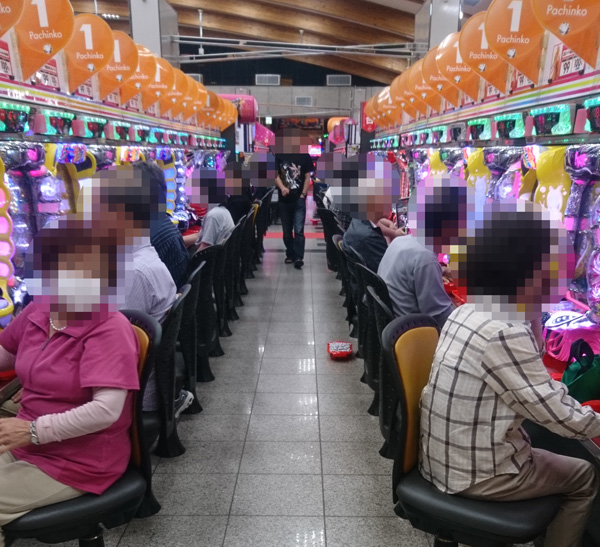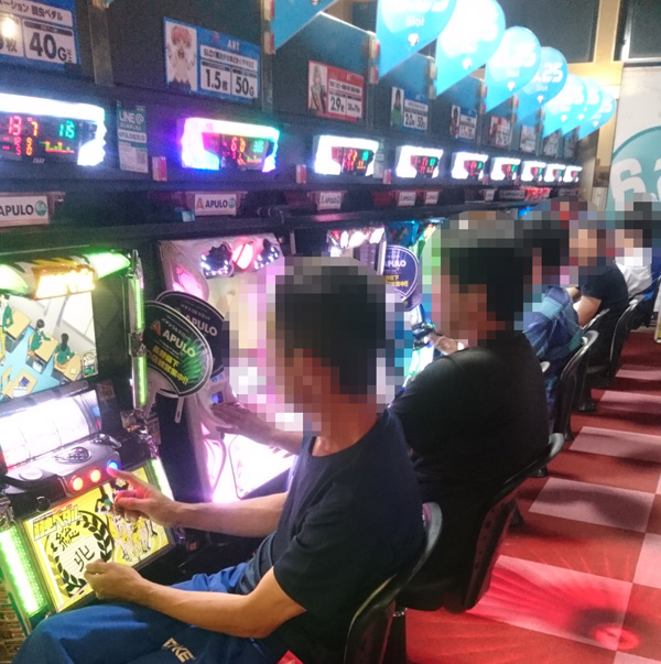 18時ごろの4円パチンココーナーでは、「CRリング 終焉ノ刻」などが人気。ホラー系のパチンコながら、プレイヤーの表情が明るかったことから、満足度の高い遊技がおこなえていたのだと思われる。