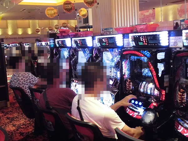 パチンコで遊技をはじめるプレイヤーも多く、ホール全体が華やかなムードにつつまれていた。