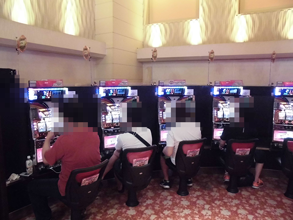 開店直後のパチスロをみてみると、新台の「パチスロ 結城友奈は勇者である」や「押忍!番長3」などが人気。