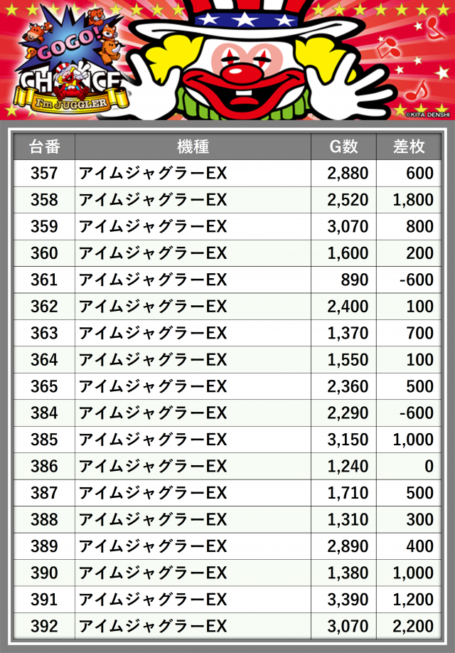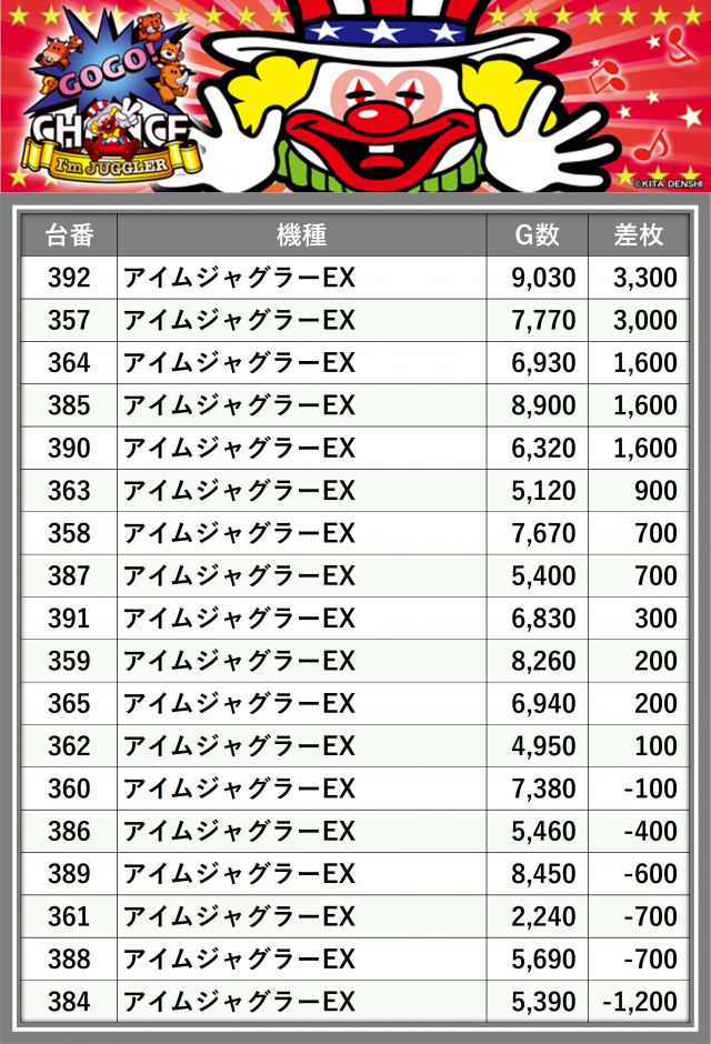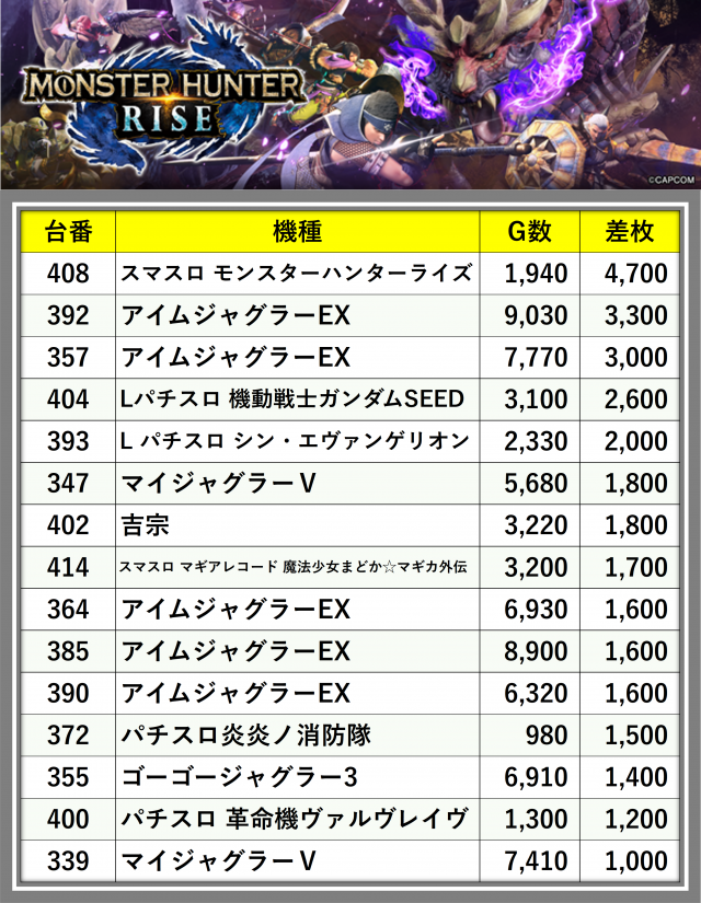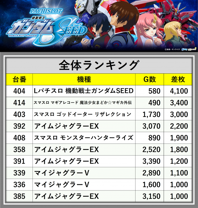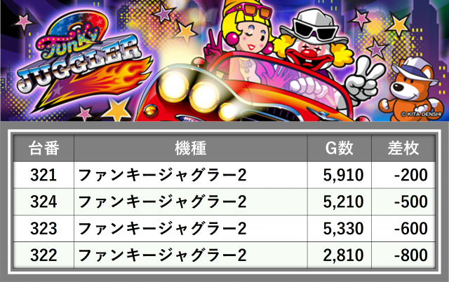 厳選された取材対象機種をはじめ、その他スロット全体から好記録が飛び出した!プレイヤーが楽しんだ1日を下記データにて振り返ってみて欲しい。