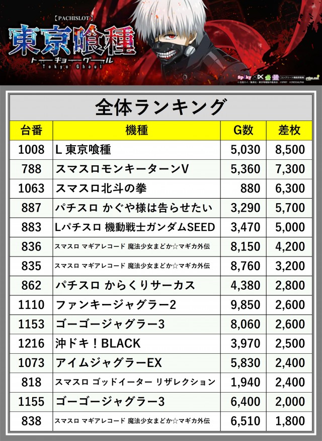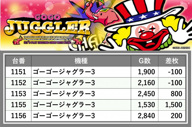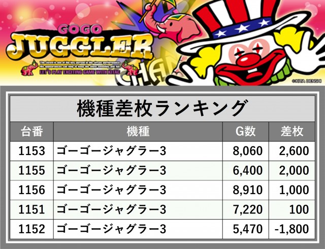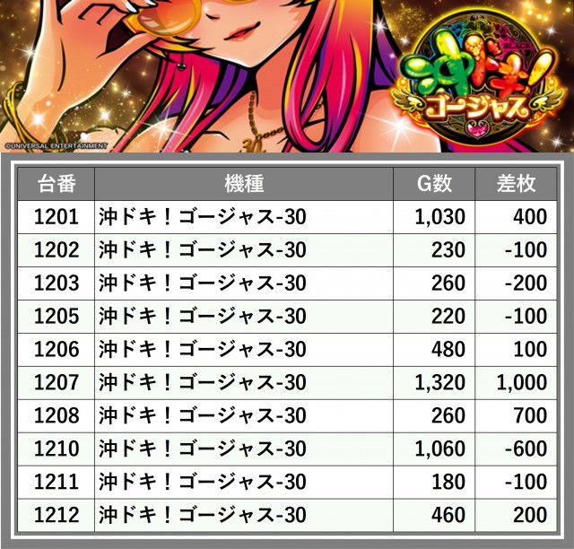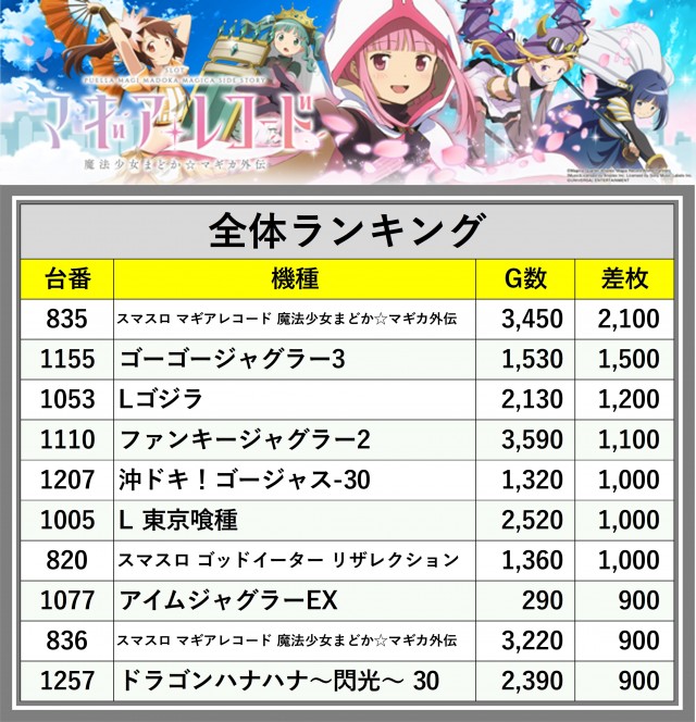 厳選された取材対象機種をはじめ、その他スロット全体から好記録が飛び出した!プレイヤーが楽しんだ1日を下記データにて振り返ってみて欲しい。