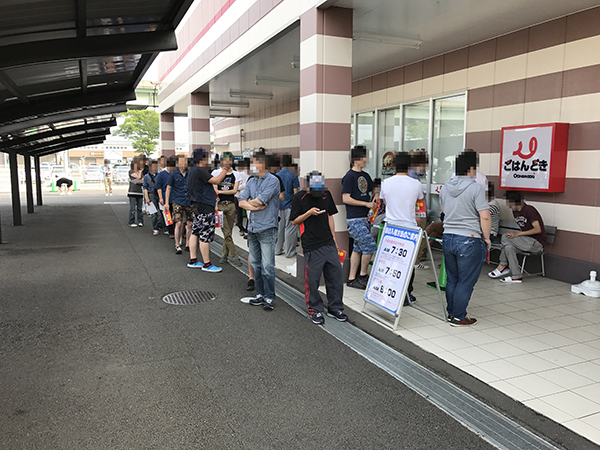 開店前からおよそ70名のプレイヤーが集合。それぞれ開店を心待ちにしている様子で、明るいスタッフの元気な挨拶に迎えられながら入店していた。