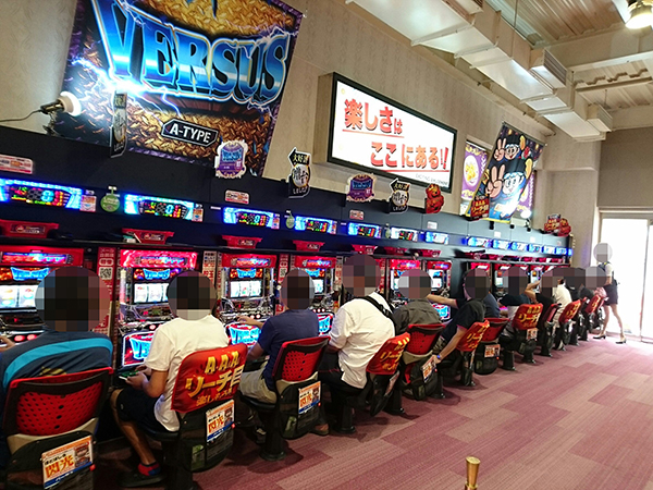 20円パチスロも「バーサス」や「ハナビ」などのボーナスタイプをはじめ、GODシリーズや「バジリスク~甲賀忍法帖~絆」といったAT・ART機もほぼ満席となっていた。