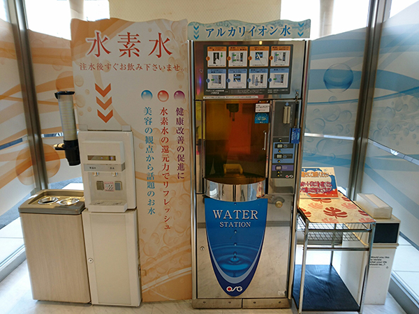 店内には水素水やアルカリイオン水のサーバが設置され、誰でも無料で利用できる。またコンビニエンスストアやうどん屋が併設されているため、わざわざ車で移動する必要もなく嬉しい。