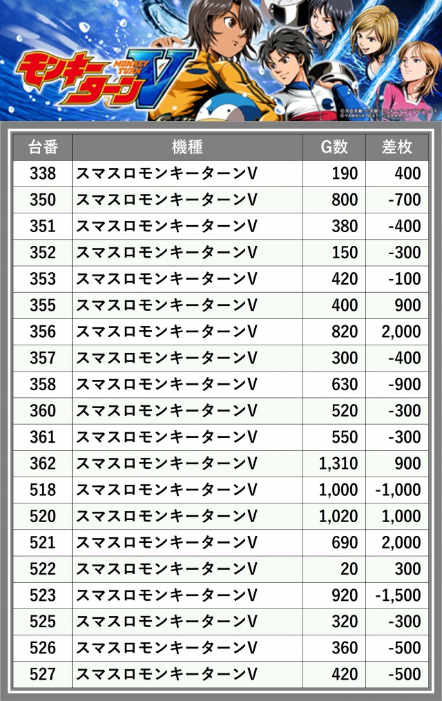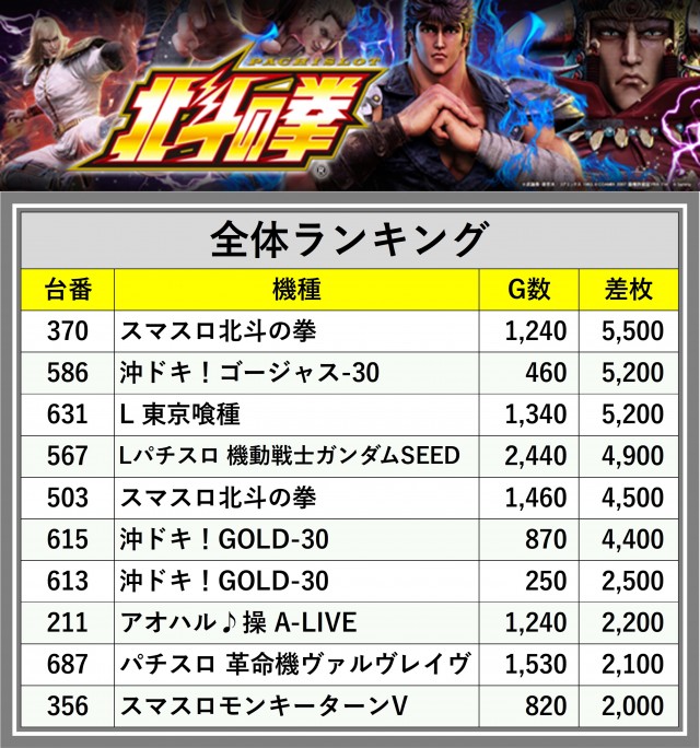 厳選された取材対象機種をはじめ、その他スロット全体から好記録が飛び出した!プレイヤーが楽しんだ1日を下記データにて振り返ってみて欲しい。