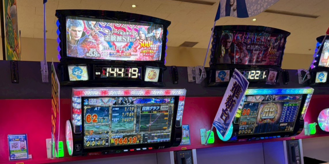 この日は、4~5台設置のAT機を中心にハイスコアが続出。そんな中、『スマスロ デビル メイ クライ5 スタイリッシュトライブ』が怒涛の+18,580ptを叩き出し堂々のランキングトップに輝いている。さらに、『沖ドキ!GOLD-30』から+8,540pt、『吉宗』から+7,240ptが飛び出し店内を盛り上げていた。