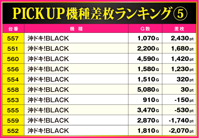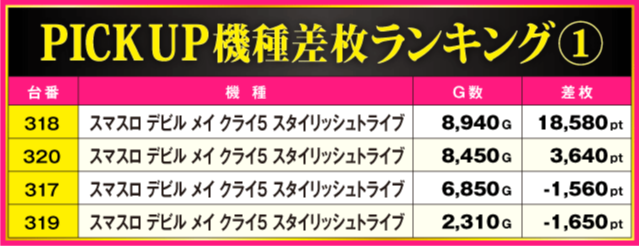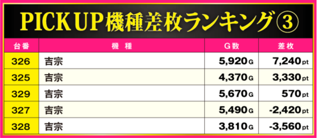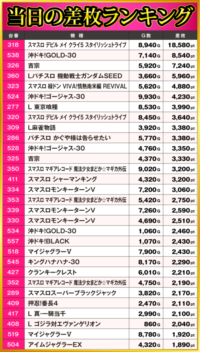 当日の差枚ランキング
