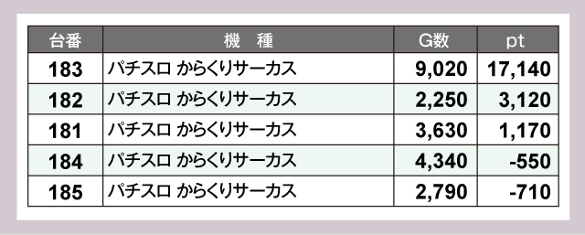 ※差枚pt順に掲載しています。