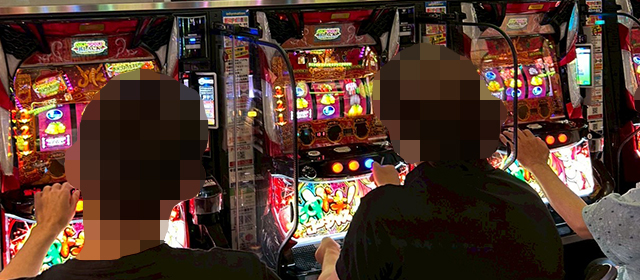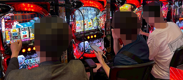 取材時の店内はすでに大盛り上がり。とくにスロットコーナーから強い活気が感じられた。はたしてどんなデータが出揃ったのか、さっそく見ていくとしよう。