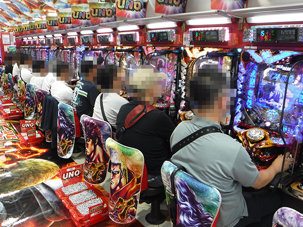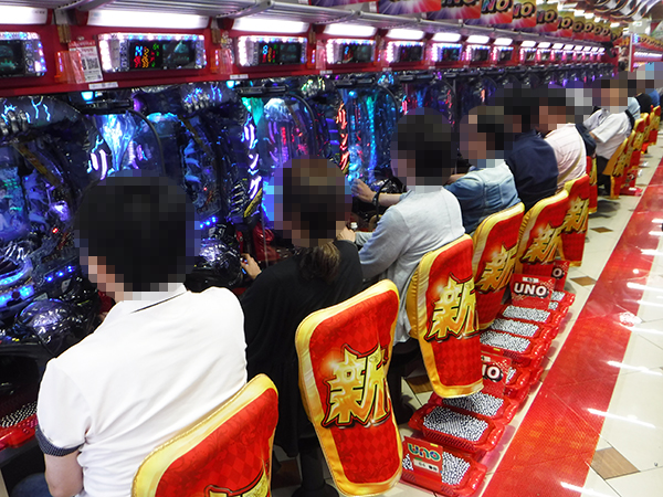 15時過ぎに1000円/240玉パチンコをのぞいてみると、導入間もない「CRリング 終焉ノ刻」や「CRひぐらしのなく頃に〜叫〜」、「CRキューティーハニー」などがほぼ満席に。新台に対する期待の高さをうかがい知ることができた。