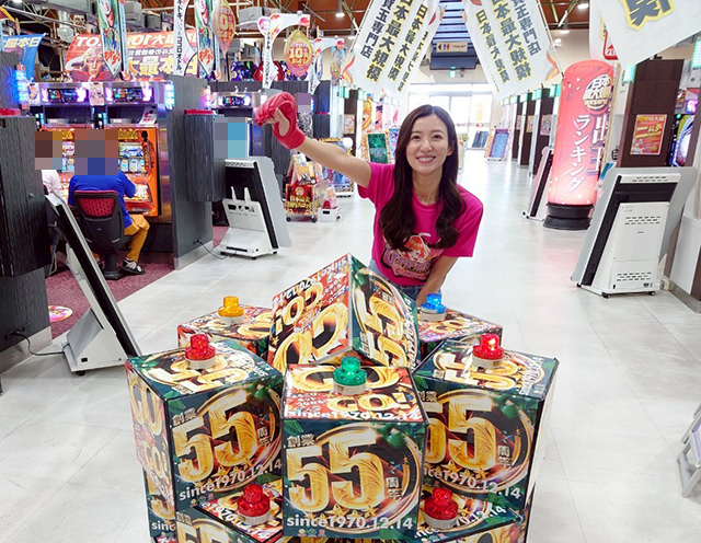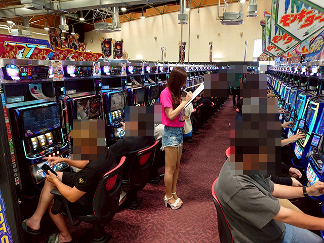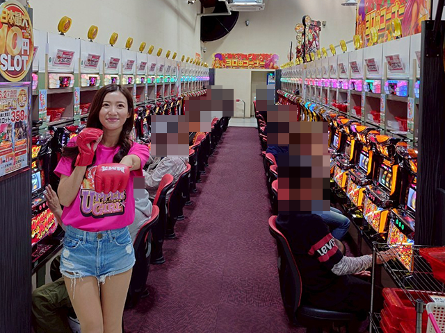 元気よくポーズを披露したところで、パチスロコーナーにレッツゴーε=(⊃>3<)⊃