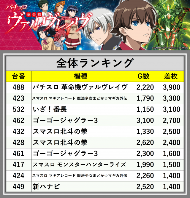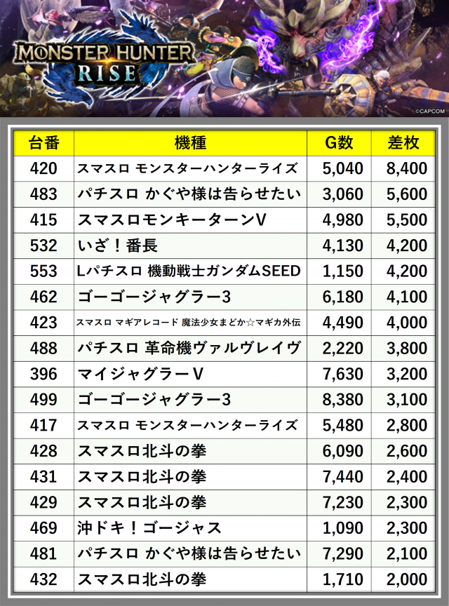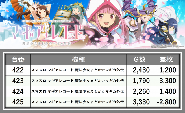 厳選された取材対象機種をはじめ、その他スロット全体から好記録が飛び出した!プレイヤーが楽しんだ1日を下記データにて振り返ってみて欲しい。
