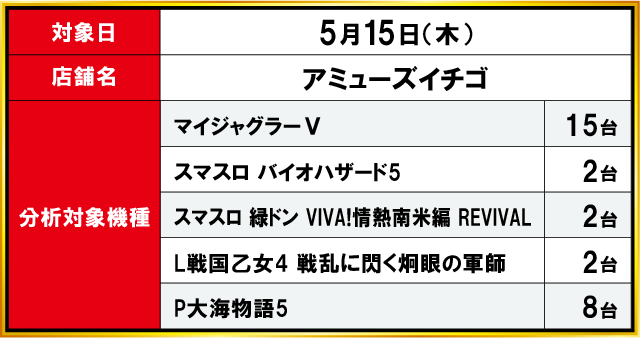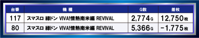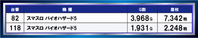 さらに、『スマスロ 緑ドン VIVA!情熱南米編』からは万枚超えを記録し、人気の『スマスロ バイオハザード5』からも全台大幅プラスを確認することができ特定機種に偏ることなく、全体的に楽しむことができていたのではないだろうか。