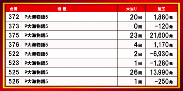 パチンコに関しても、定番人気機種の『P大海物語5』を中心に安定した稼働を確認。