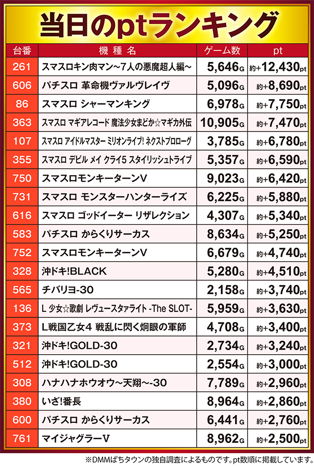 ※なお、本記事中のデータは全てDMMぱちタウンの独自調査によるものです
