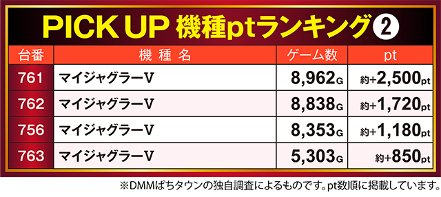 「マイジャグラーⅤ」の761番台が約+2,500pt!