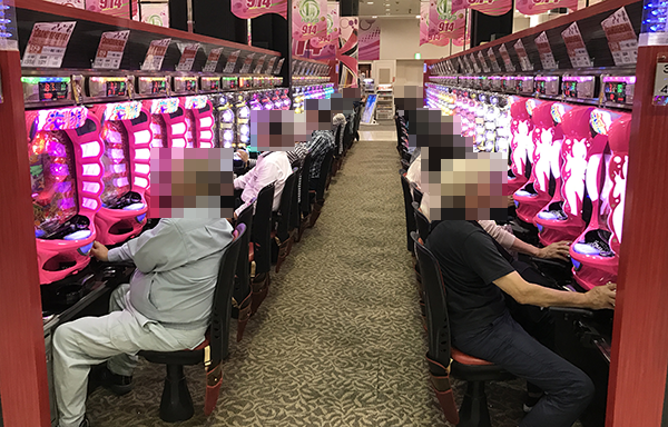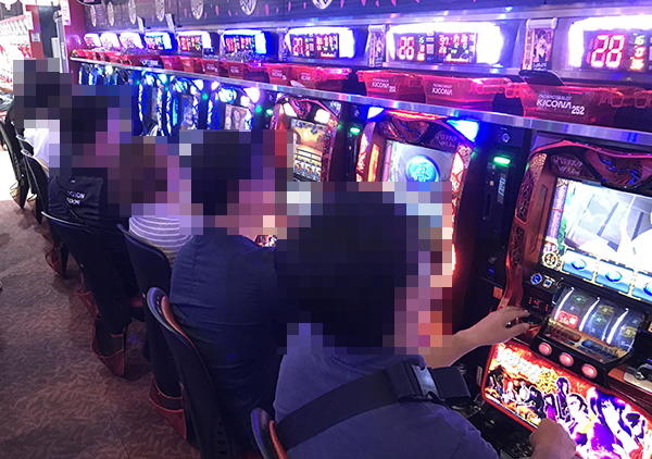 午後の20円パチスロでは、「バジリスク~甲賀忍法帖~絆」と「沖ドキ!」が盛況。機種の性能を最大限まで引き出しているといったプレイヤーが多く、充実した時間を過ごせていることもうかがえた。