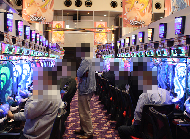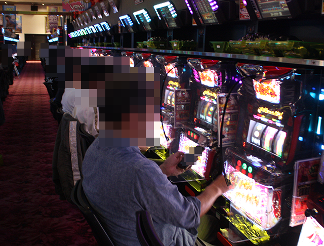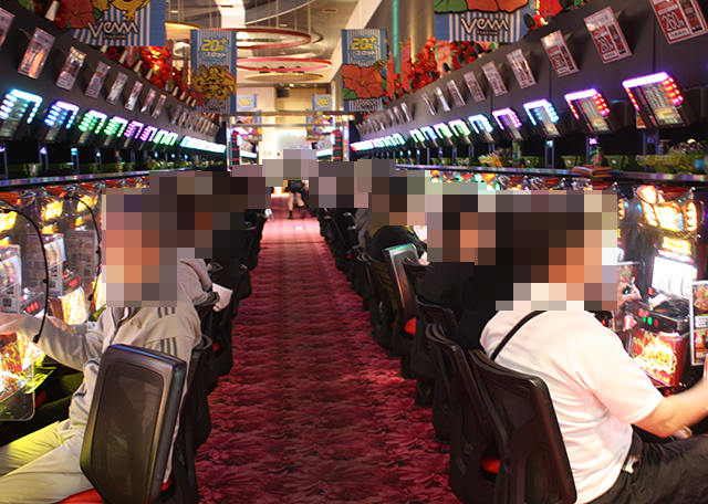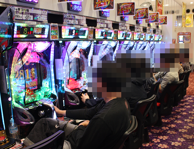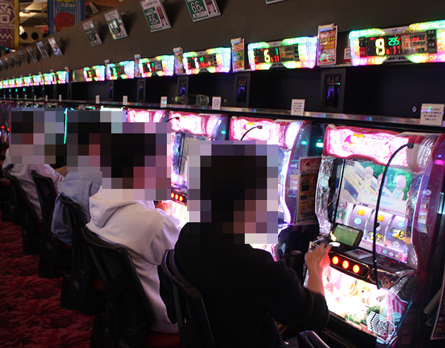 パチンコをみると、「e 東京喰種」に空き台がなく、明るい表情をみせているプレイヤーも多い。