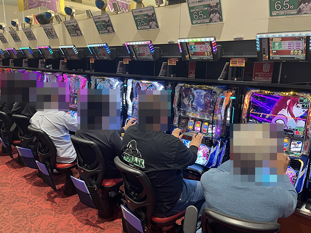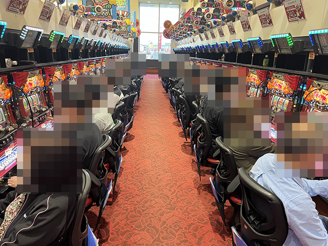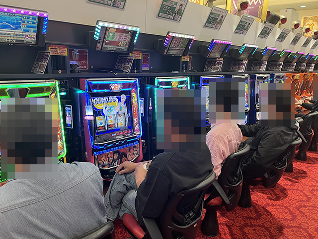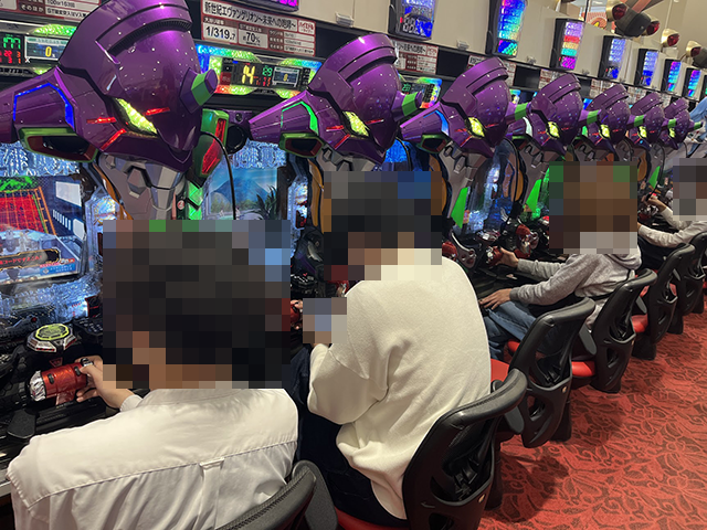 「Lパチスロ 機動戦士ガンダムSEED」も空き台がみあたらず、明るい表情で遊技をおこなう姿が並んでいた。