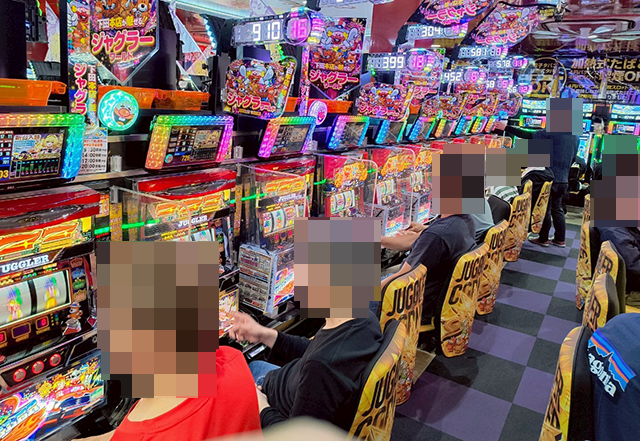 「ファンキージャグラー2」や「マイジャグラーⅤ」などが笑顔に彩られ、にぎやかな雰囲気となっていた。