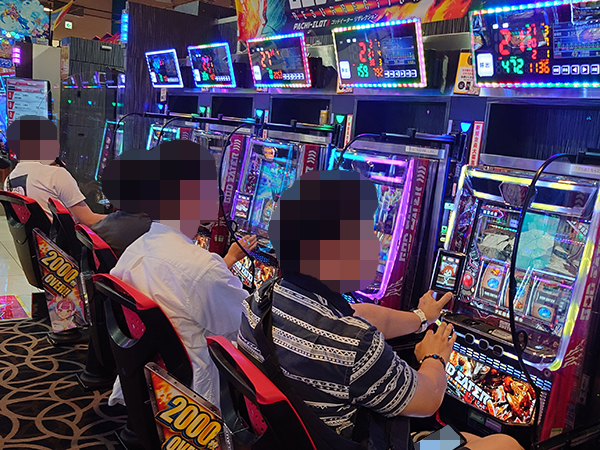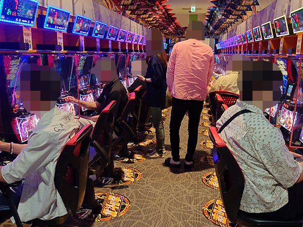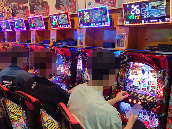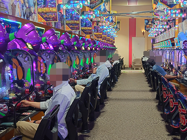 取材時は既に多くのプレイヤーが集結し、パチンコ・パチスロを問わずにぎやかな状況となっていた。
