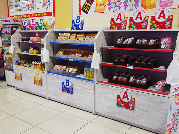 景品コーナーは豊富な品揃えで、ドリンク類やお菓子など様々なアイテムが用意されていた。
