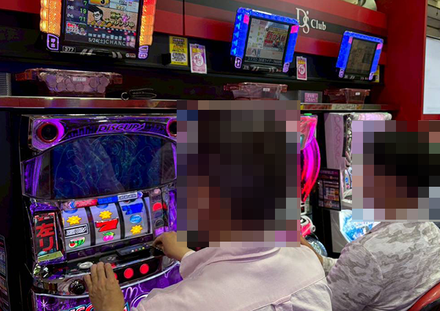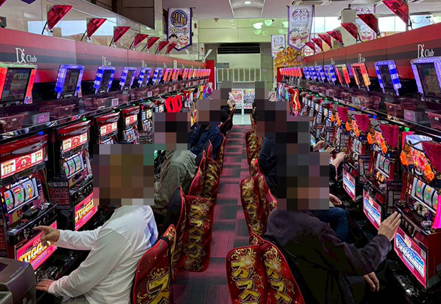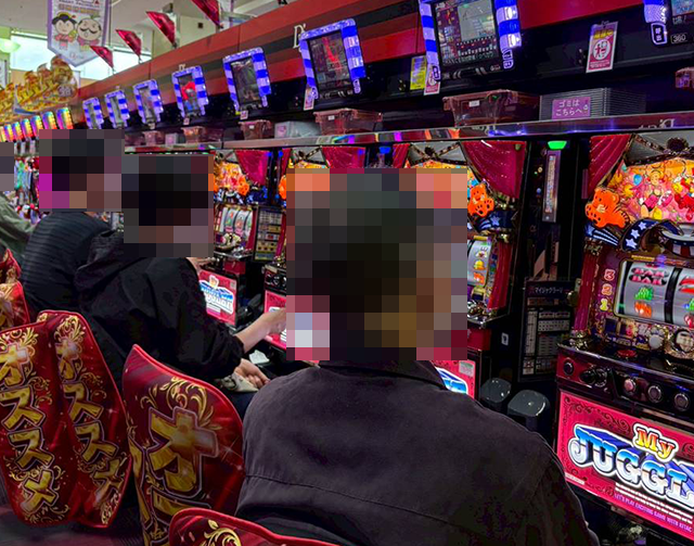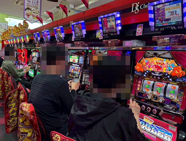 「マイジャグラーⅤ」を中心に、さまざまな機種でみられたプレイヤーたちの笑顔。