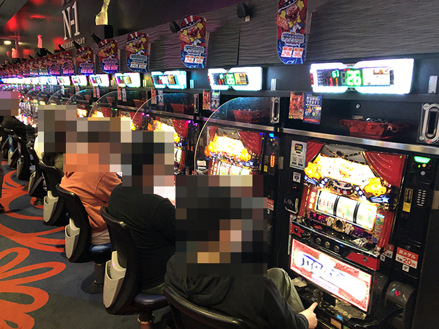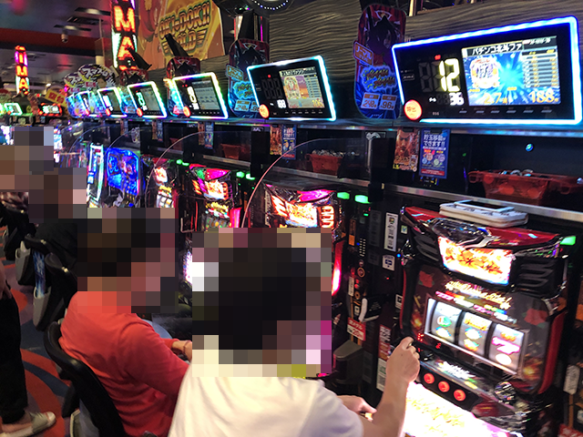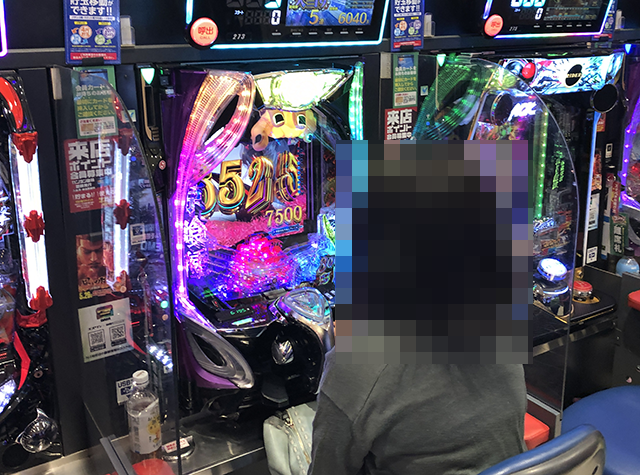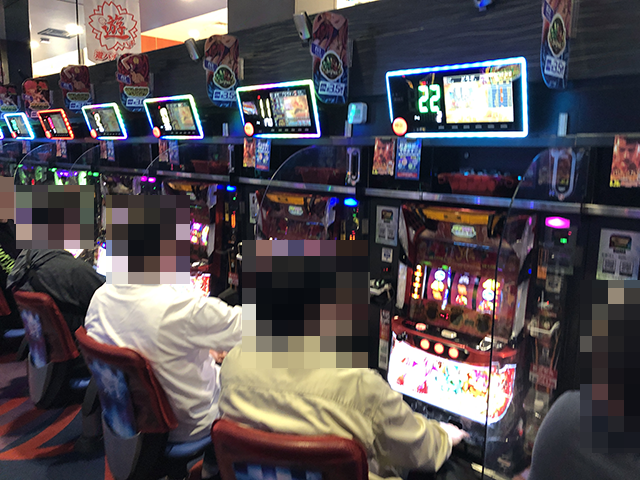 14時を過ぎた頃のパチスロでは、「スマスロ北斗の拳」が満席に近く、魅力的なシーンがみられた。