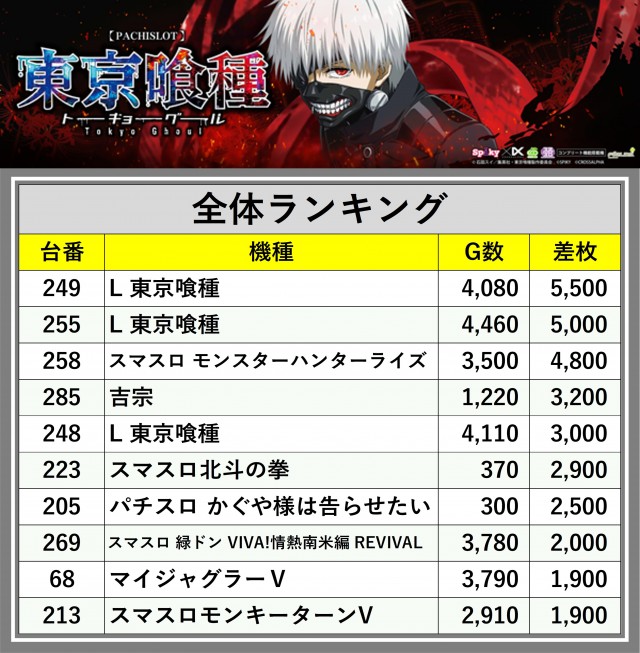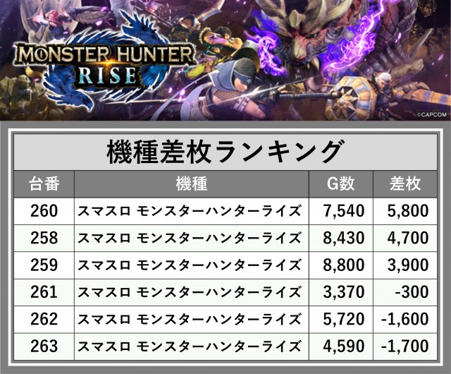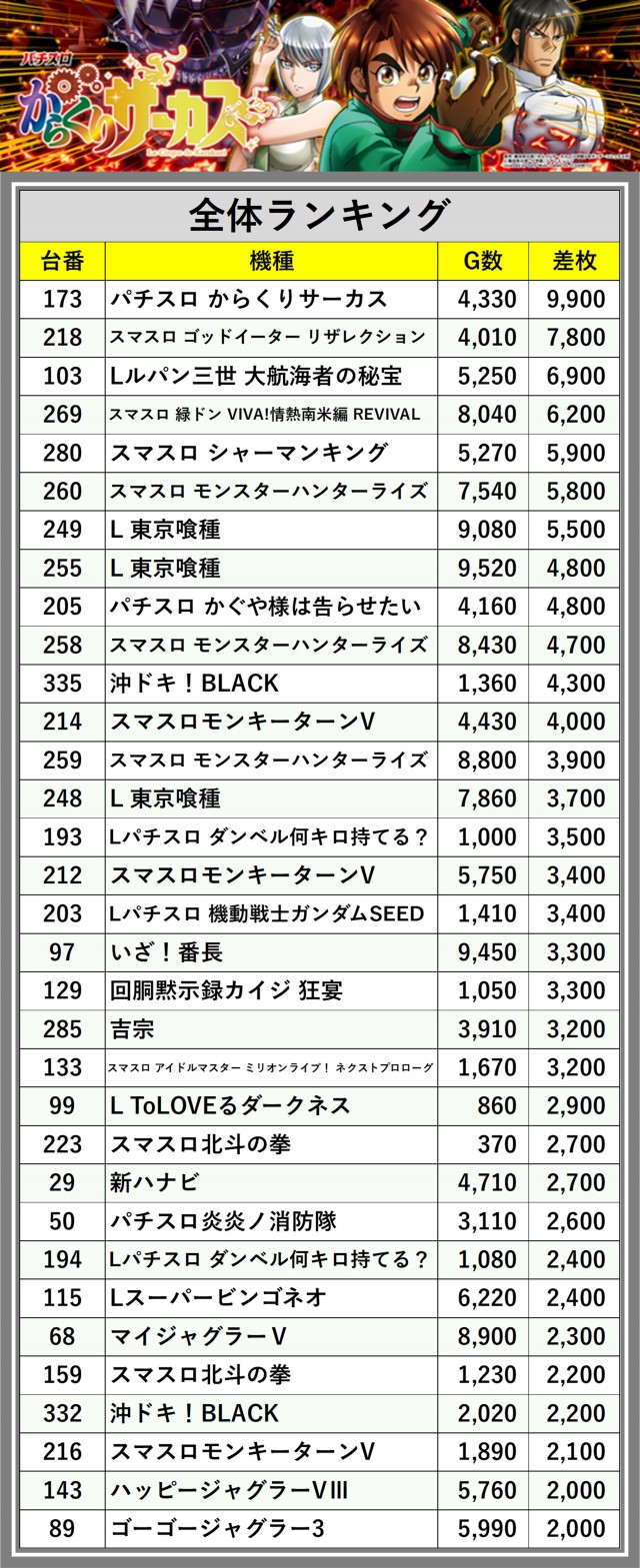 ※差枚数順に掲載しています