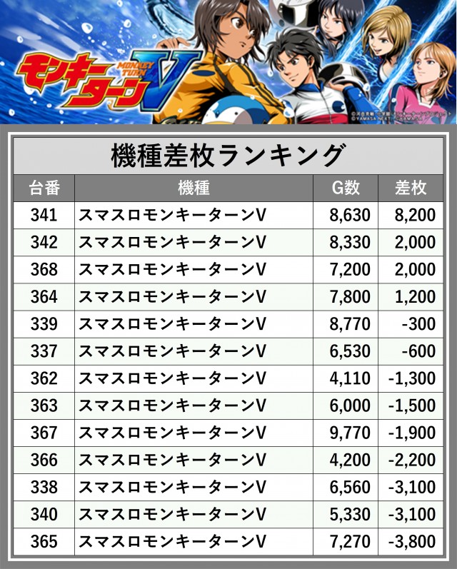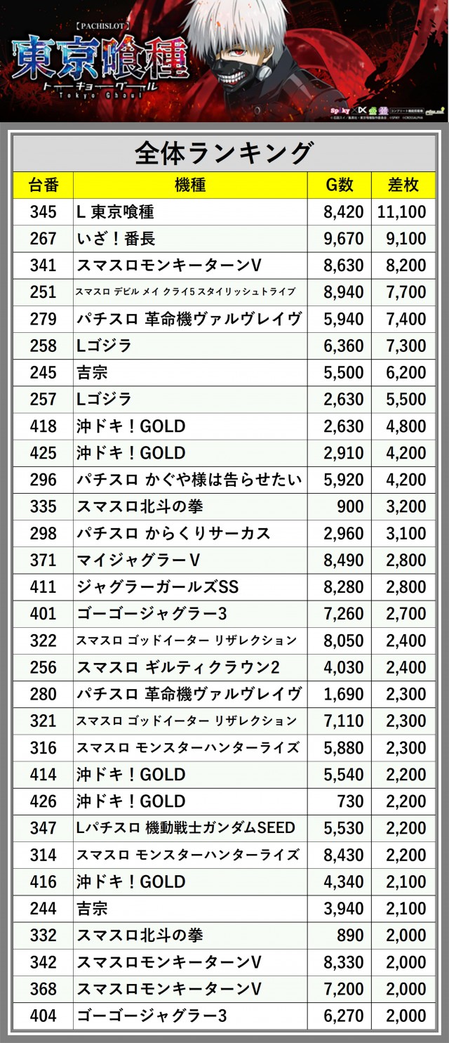 ※差枚数順に掲載しています
