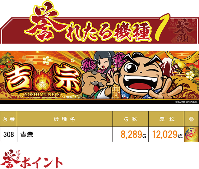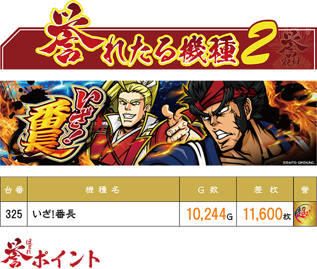 同じく1台設置の『いざ!番長』からも10,000枚オーバー記録が生まれ、大都の最新2機種がこの日の1・2フィニッシュを飾った。これは意図的な結果なのか、それとも偶然が重なった上での結果なのか。
