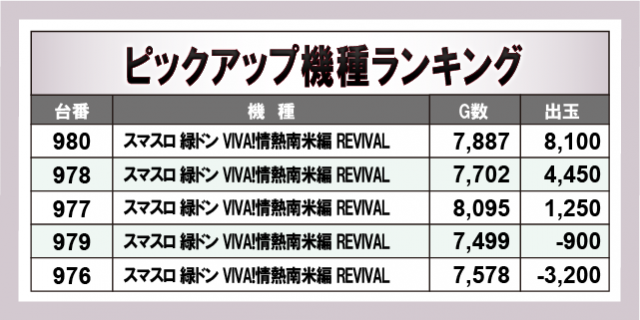 ※出玉数順に掲載しています