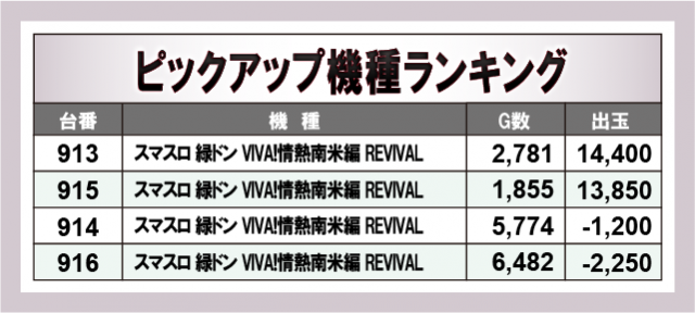 ※出玉数順に掲載しています