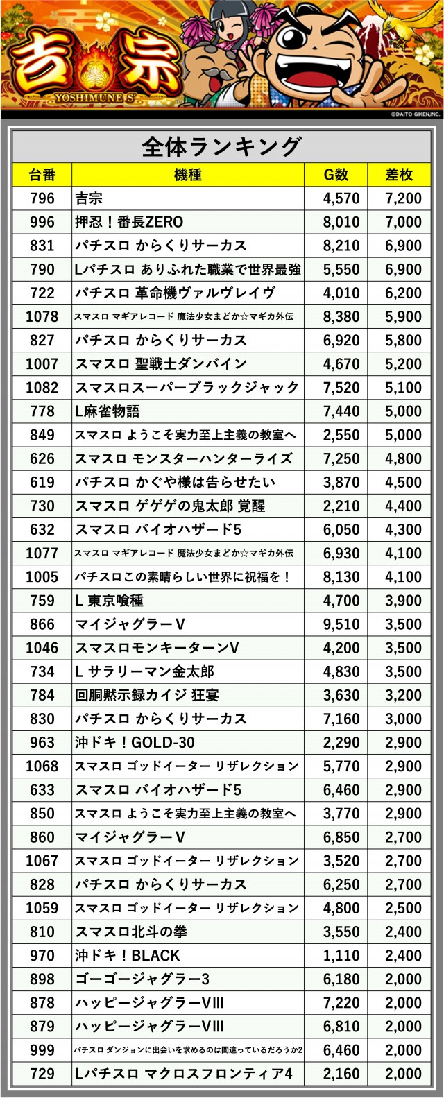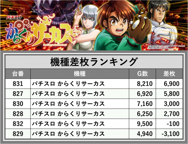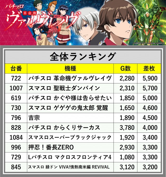 ※差枚数順に掲載しています