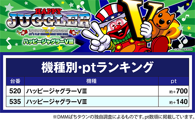 「ハッピージャグラーVⅢ」の520番台と535番台もプラス。