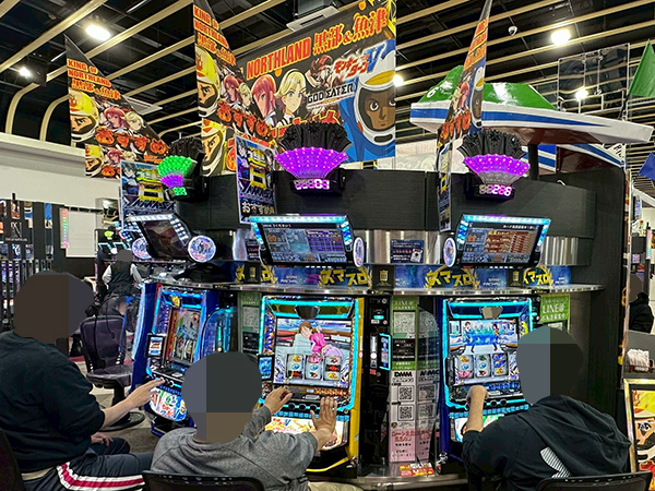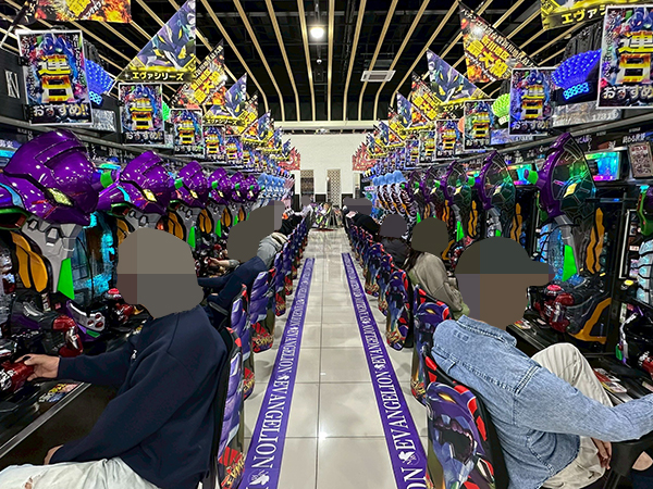 14時ごろの4円パチンコを見てみると「新世紀エヴァンゲリオン〜未来への咆哮〜」や「ぱちんこ シン・エヴァンゲリオン Type レイ」、「e 東京喰種」が活況。プレイヤーの満足そうな表情から、充実した時間を過ごしていたことがうかがえる。