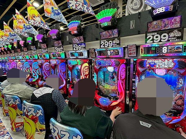 店内では貸し玉料金を問わず様々な機種で、心ゆくまで楽しむプレイヤーの姿が見られた。