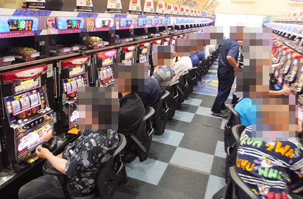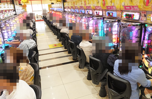 店内は多くのプレイヤーでにぎわっており、パチンコとパチスロの各シマから活気が感じられた。