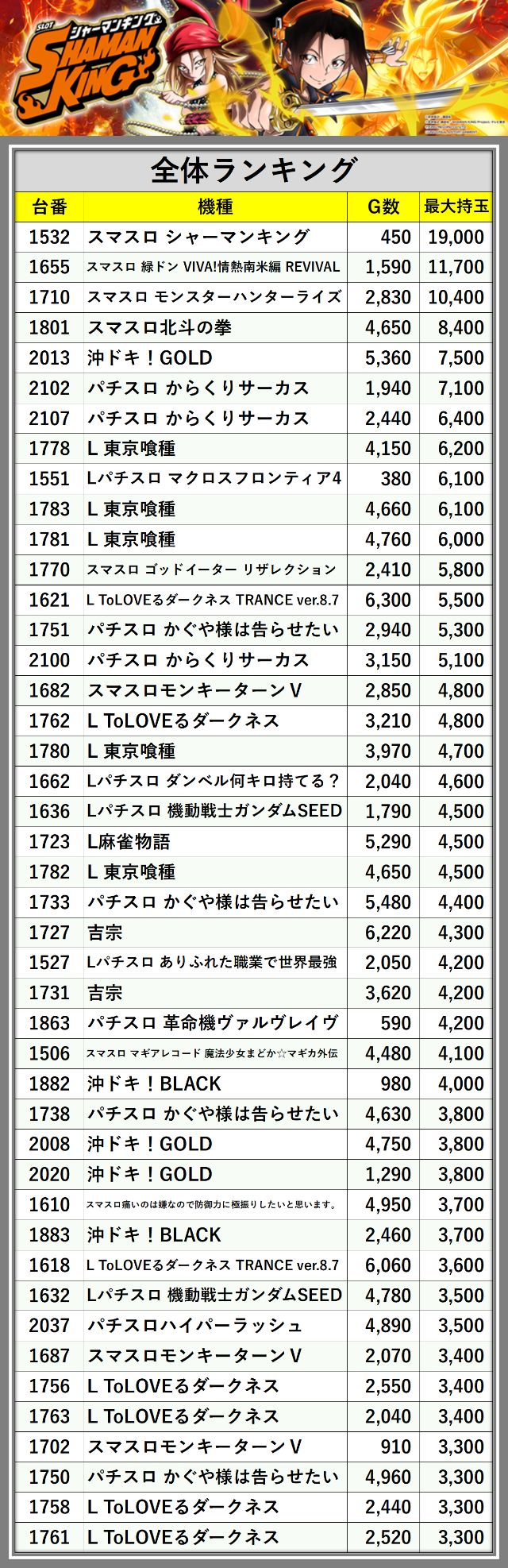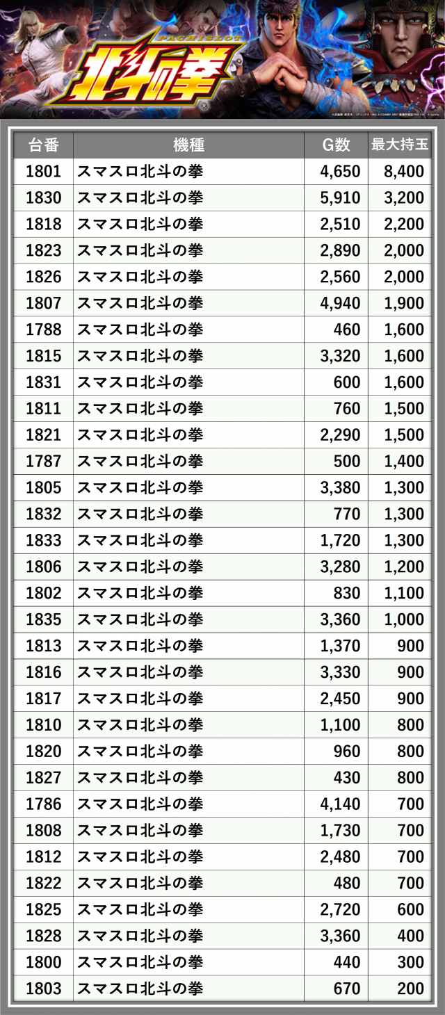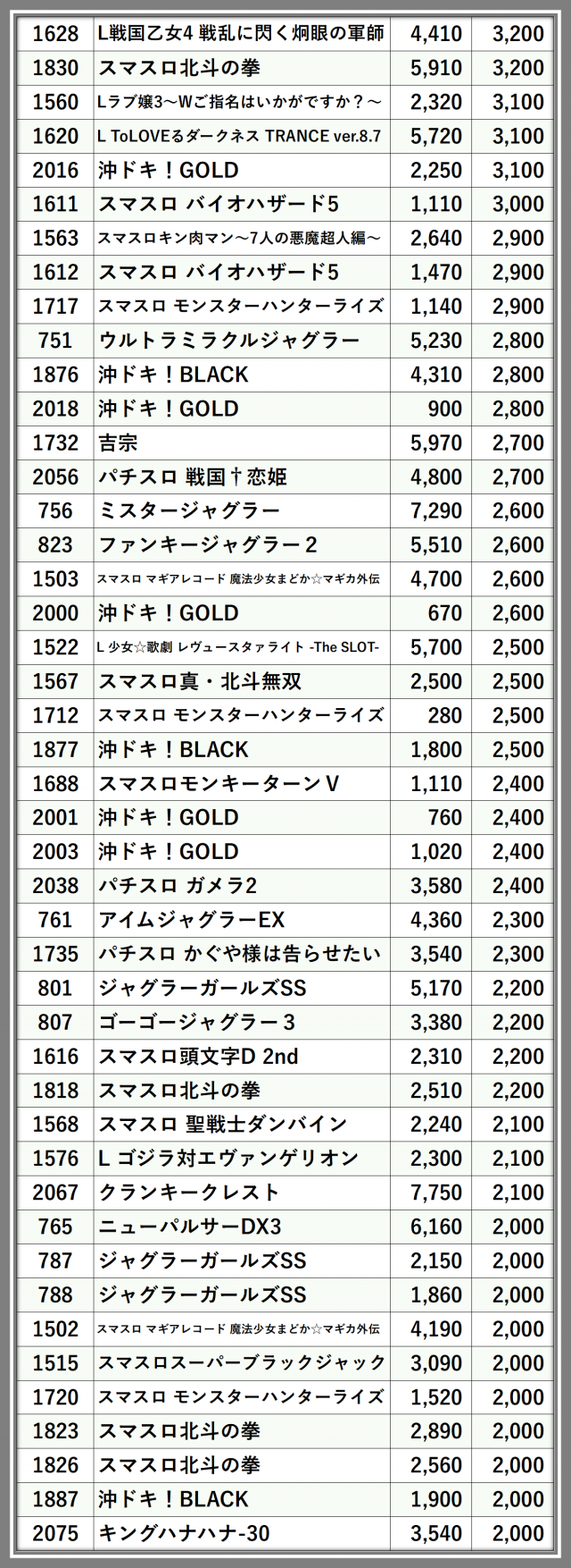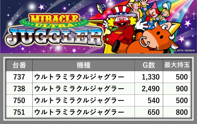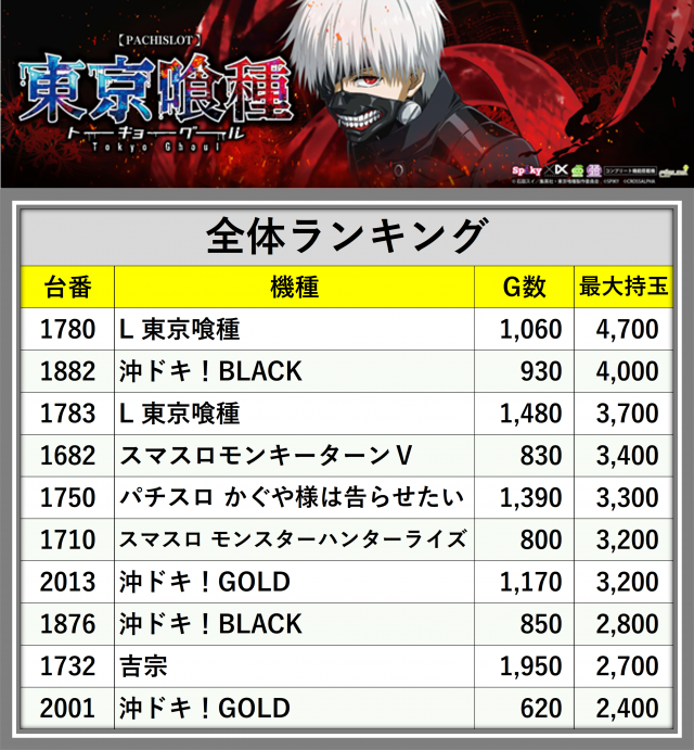 厳選された取材対象機種をはじめ、その他スロット全体から好記録が飛び出した!プレイヤーが楽しんだ1日を下記データにて振り返ってみて欲しい。