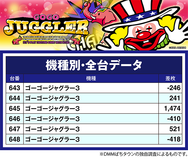 「ゴーゴージャグラー3」にも結果を残した台は多く、645番台が1,500ptクラス。
