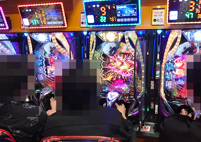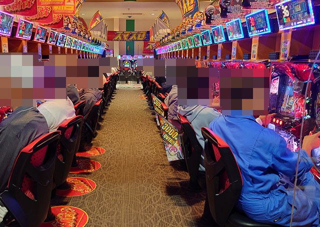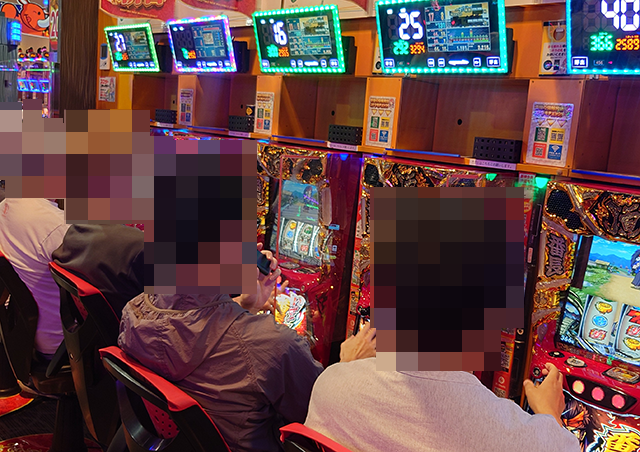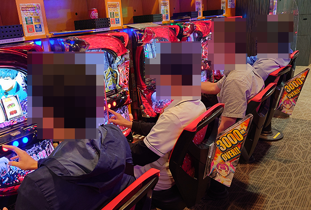 取材時は満席となっており、2台の出玉が3,000pt以上となっていた。