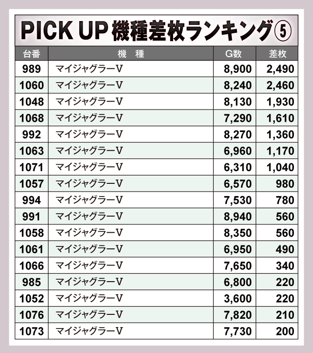 ※差枚数順に掲載しています。