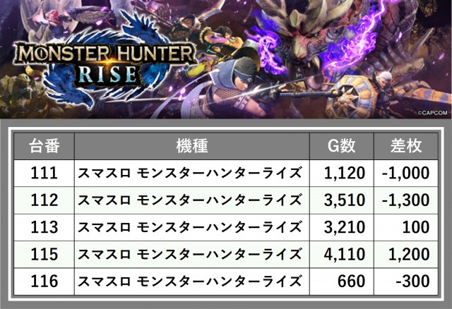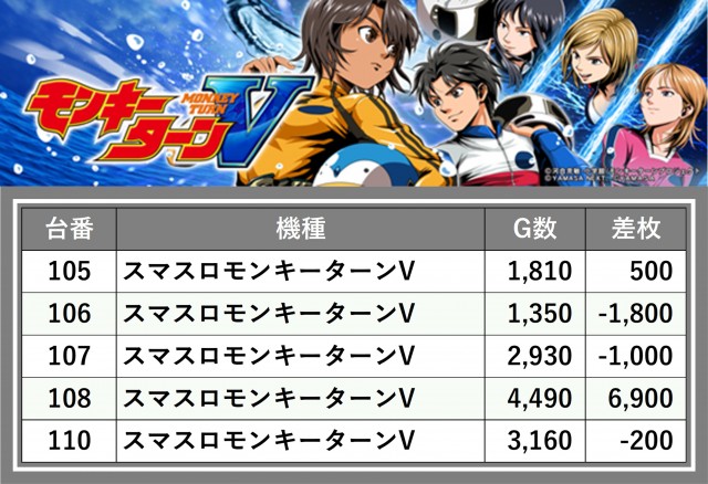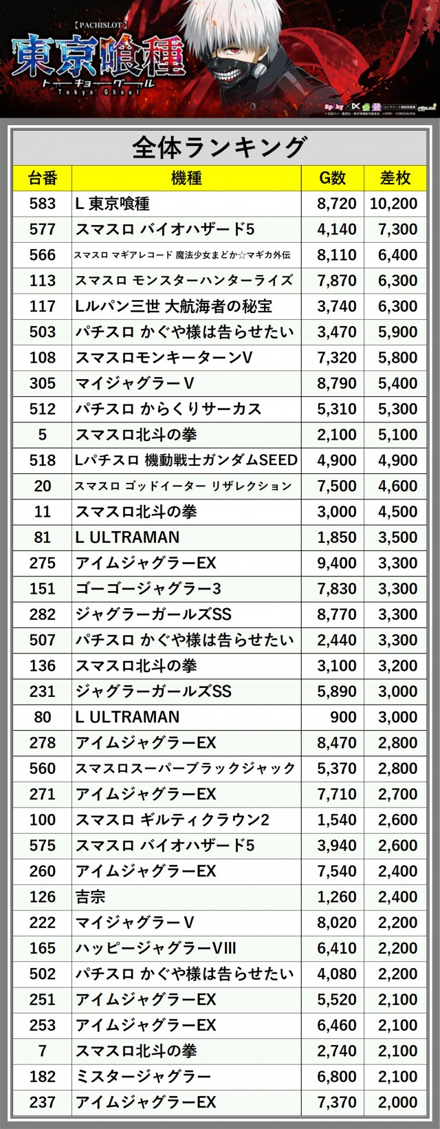 厳選された取材対象機種をはじめ、その他スロット全体から好記録が飛び出した!プレイヤーが楽しんだ1日を下記データにて振り返ってみて欲しい。