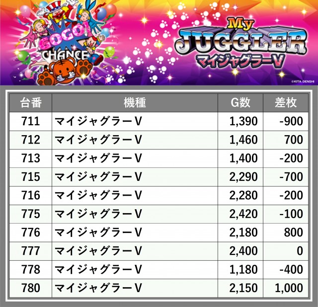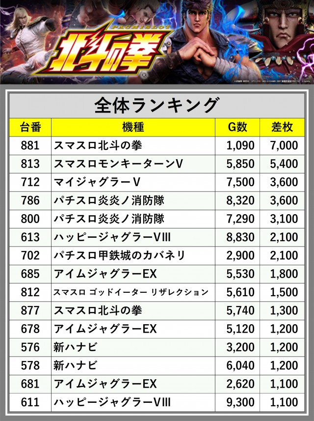厳選された取材対象機種をはじめ、その他スロット全体から好記録が飛び出した!プレイヤーが楽しんだ1日を下記データにて振り返ってみて欲しい。